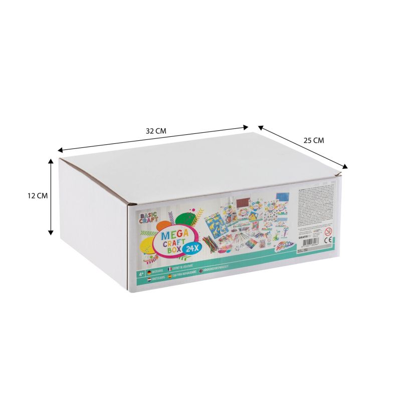 Комплектът съдържа 24 различни декорации: различни видове цветна хартия, стикери, книжка за оцветяване, текстилни декорации, пластмасови декорации, лепящи мърдащи се очички, 2 ножици, обикновено и брокатено лепило и други.