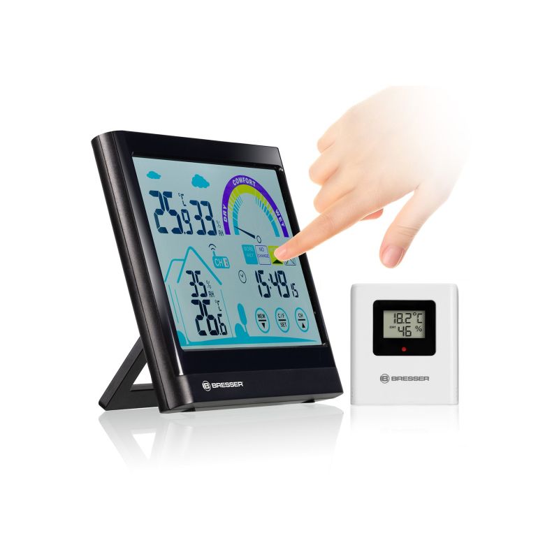 Станцията може да се управлява и настройва много бързо чрез сензорния екран. Показва час, вътрешна и външна температура и влажност. За допълнително удобство станцията е оборудвана с бяло фоново осветление.