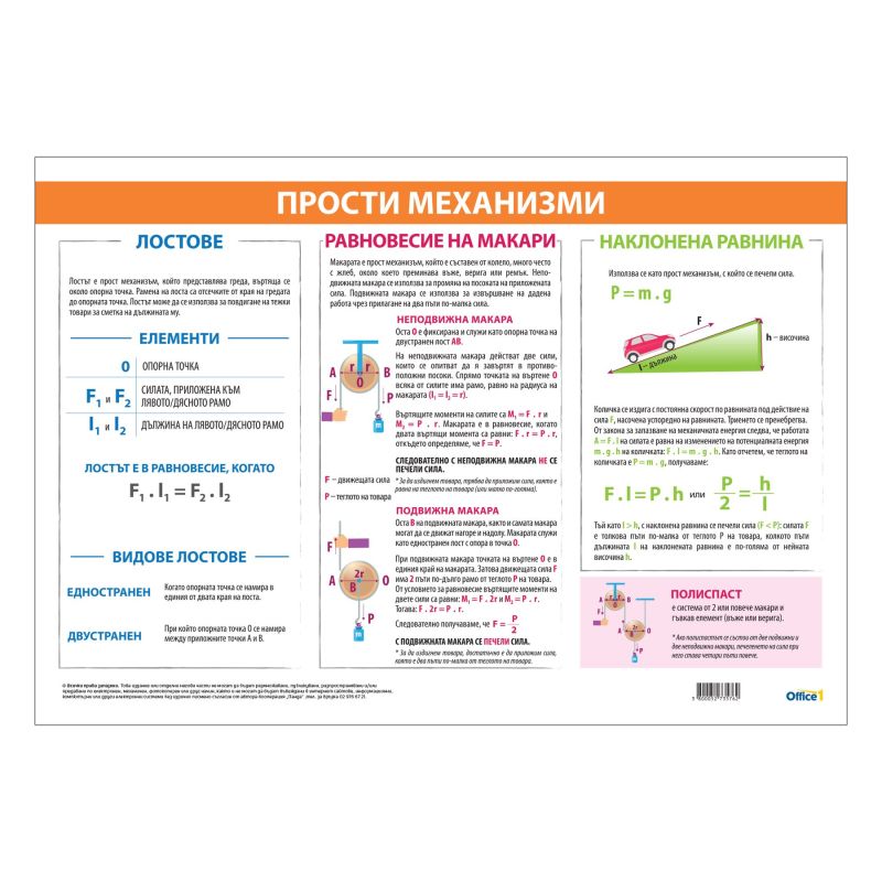 Cubos Ученическо табло ''Прости механизми'', 100 x 70 cm