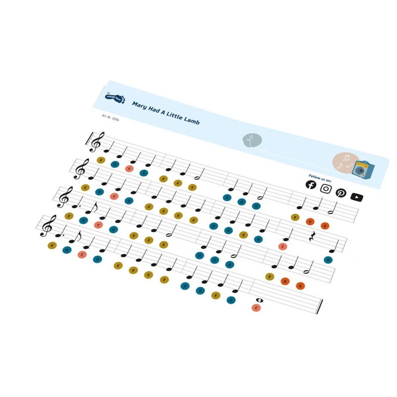 Тоналните ленти са цветно кодирани и помагат на децата при първите им музикални композиции заедно с нотния лист.