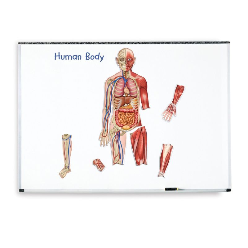 Накарайте бялата ви дъска да оживее със света на науката.Комплектът вклюва скелетна система, основни органи, и мускулни групи. Реалистичните подробни части се съчетават, за да създадат тяло с височина над 90 сm. Отлично за демонстрация на целия клас или за преподаване на малки групи ученици. Включва ръководство за употреба с диаграми. Възраст: 5 – 9 години. Може да видите ръководството за употреба тук.