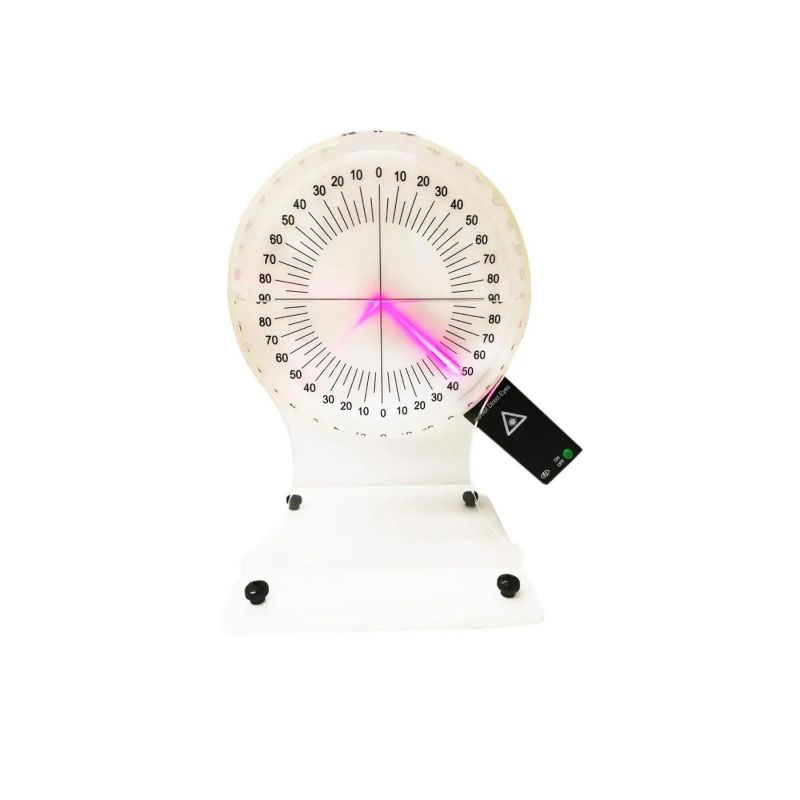 Вграден лазер, който се върти и може да се фиксира във всяка точка около кръгла градуирана скала.