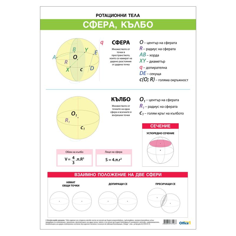 Office 1 Ученическо табло ''Ротационни тела пресечен конус и сфера'', 70 x 100 cm, двустранно