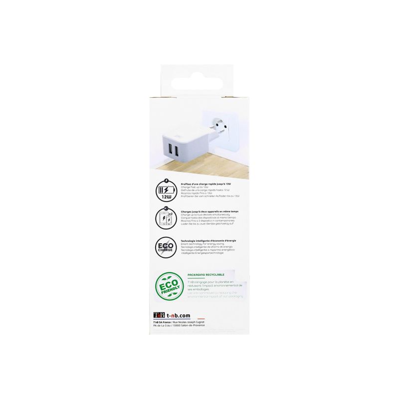 TNB Зарядно устройство, 2 USB, 2.4 A, 12 W, бяло
