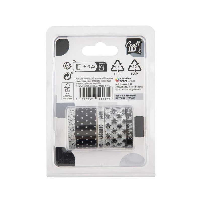 Craft ID Тиксо, с мотиви за декорация, дължина 3 m, 3 броя, черно-бяло