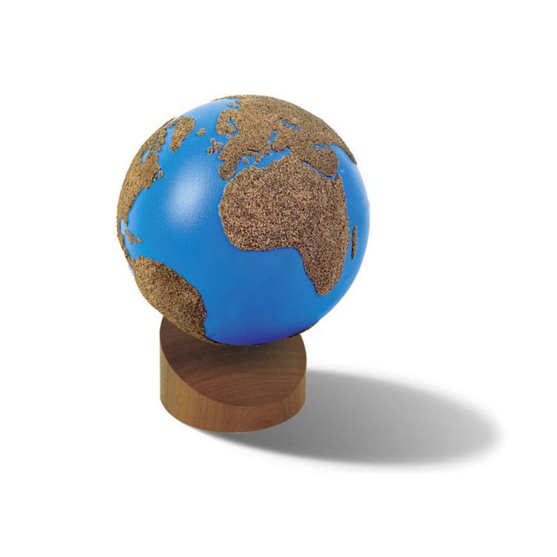 Глобусът е специално изработен - водата е в син цвят и гладка повърхност, а сушата - с грапава повърхност.