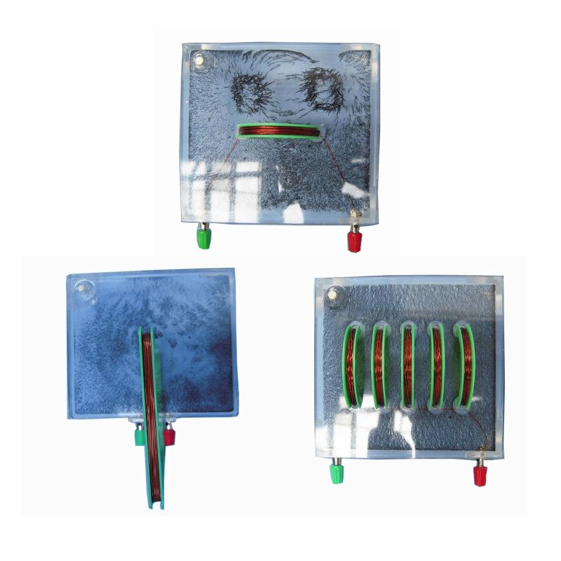 Комплектът се състои от три устройства за представяне на силовите линии на магнитното поле около електрифициран проводник (праволинейни, кръгли, намоткови).