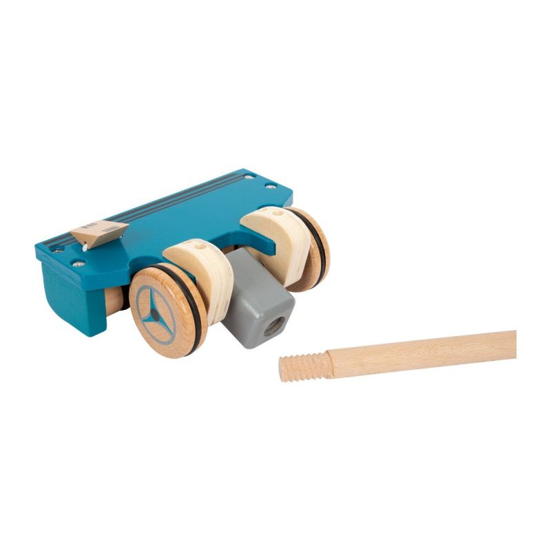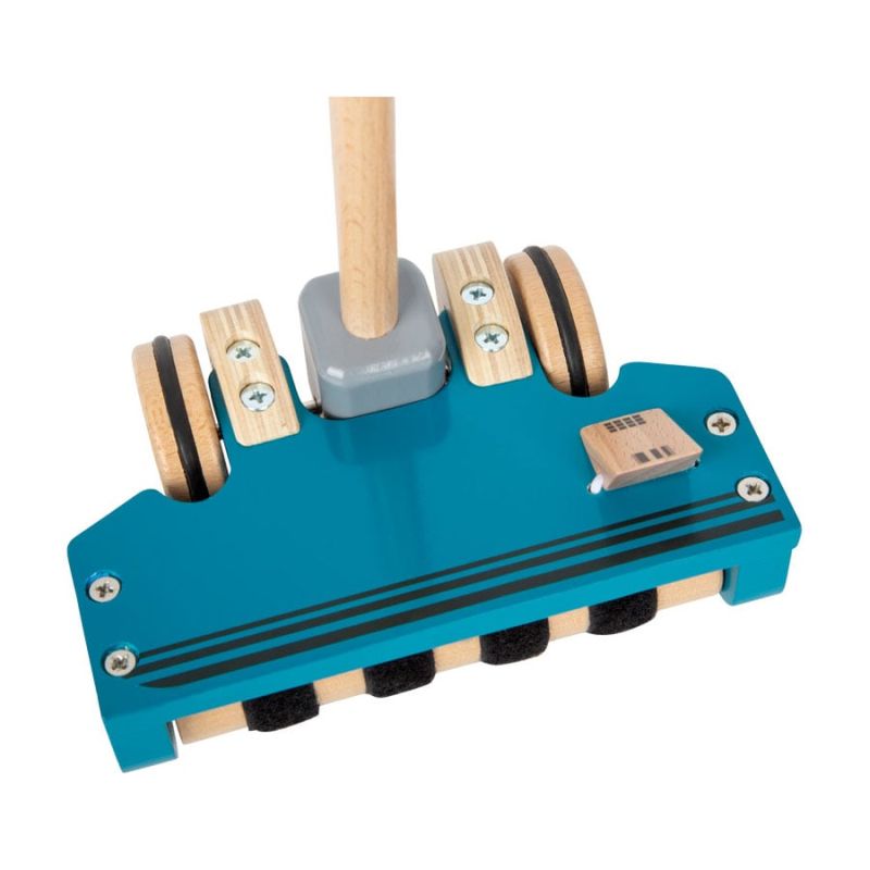Тази многофункционална дървена прахосмукачка е играчка за бутане и ролева играчка едновременно. Малките деца могат да я ползват като помощно средство за ходене, а по-големите - в активна ролева игра.