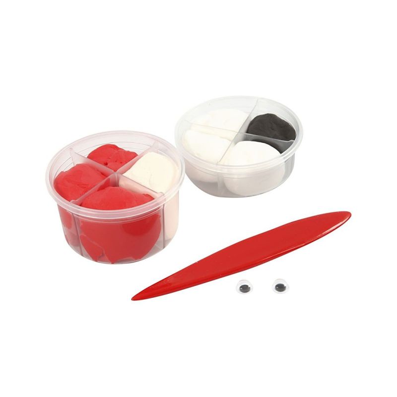 Комплектът включва всички материали, необходими за направата на забавна фигура на дядо Коледа с помощта на Silk Clay®.
