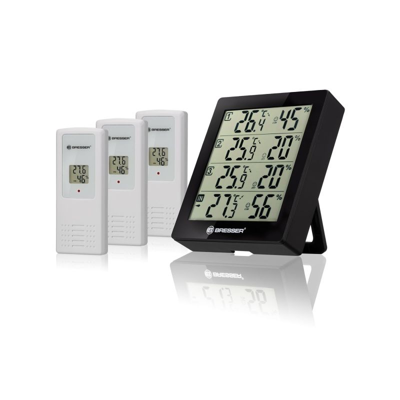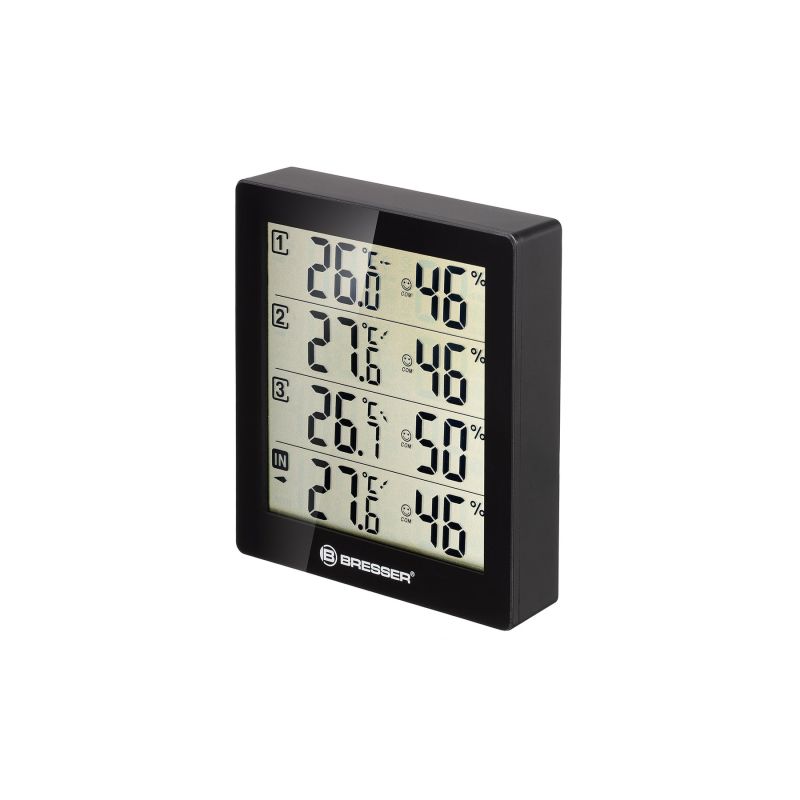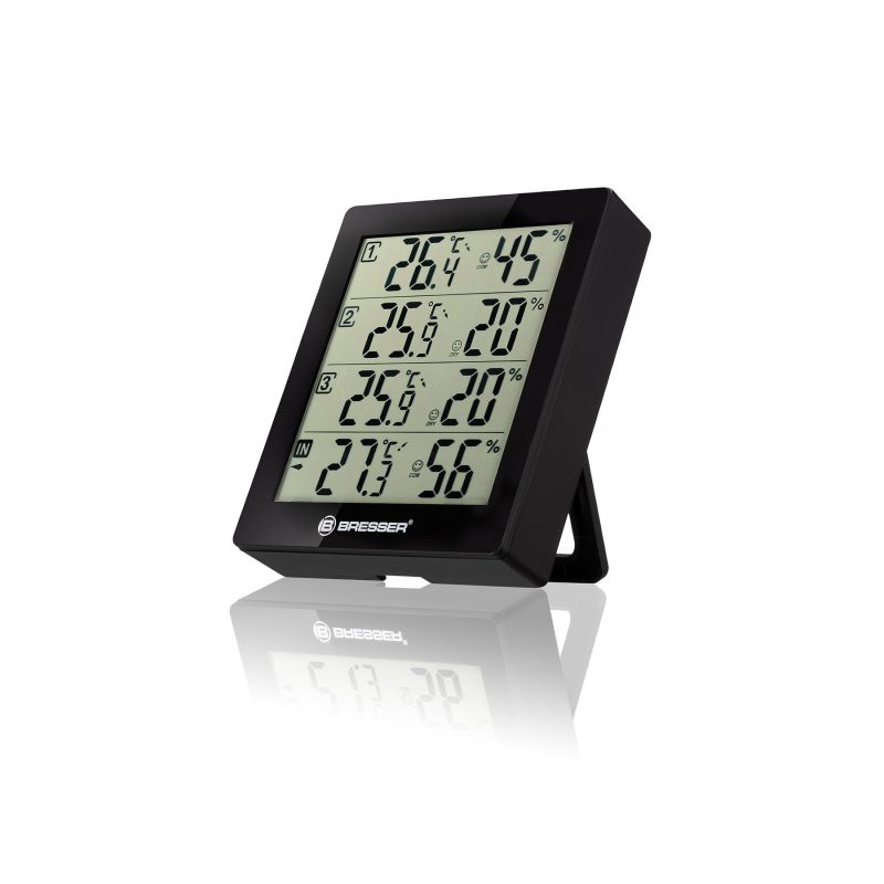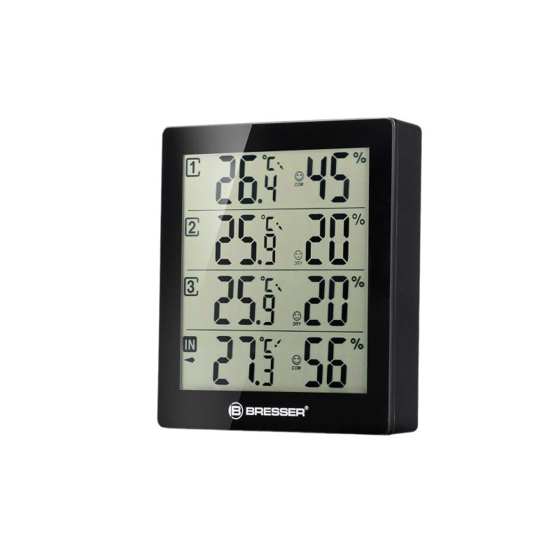 Метеостанцията Quadro на BRESSER може да измерва температурата и влажността на въздуха в къщата или около нея на 4 различни места.