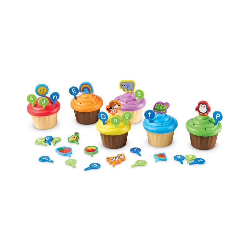 Забавните кексчета помагат на децата да научат азбуката, да съставят кратки думи, използвайки цветната азбука и лексиката, като насърчават ранните езикови умения и комуникацията!
