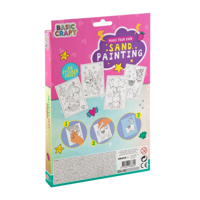 - 4 стикера-шаблони с различни мотиви за оцветяване посредством пясък.