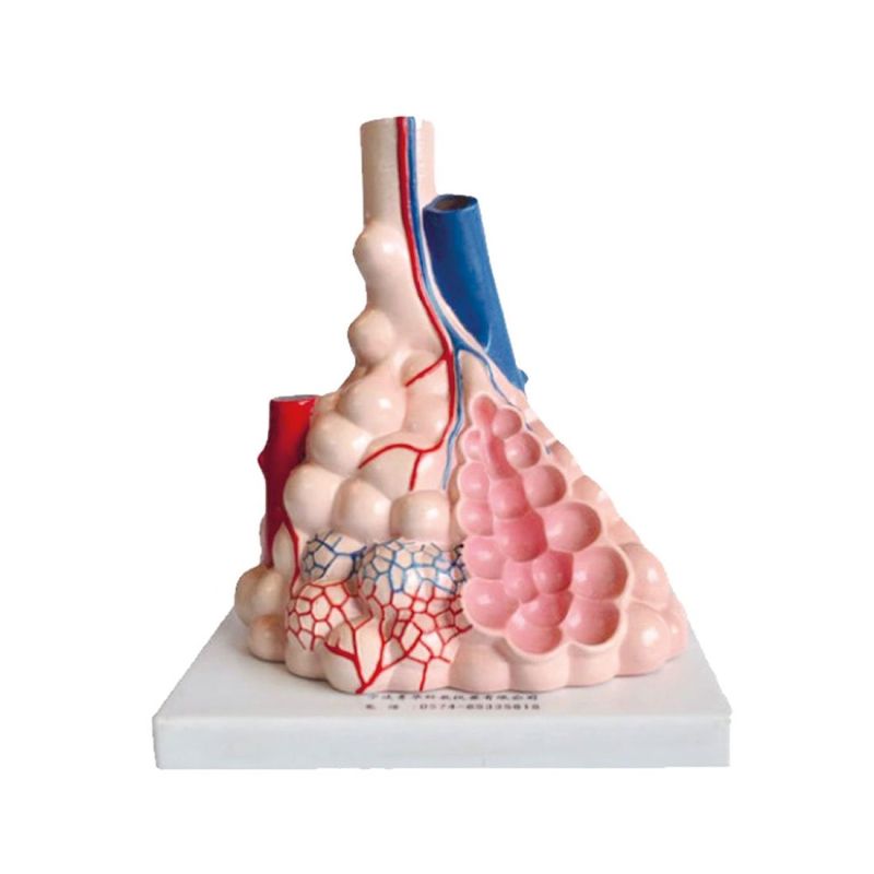 С модела на част от белодробния лоб, показващ алвеолите, ще се запознаете в детайли с вашия бял дроб и ще разберете как функционира и защо е важно да работи правилно! Ще видите всички анатомични детайли на белодробните алвеоли и бронхиоли, както и на капилярните съдове, артериолите и вените.