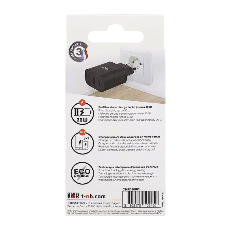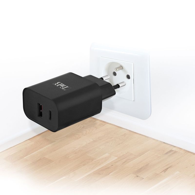 Зарядно устройство TNB, USB-C, 100 - 240 V, черно, USB Type-C, USB Type-A