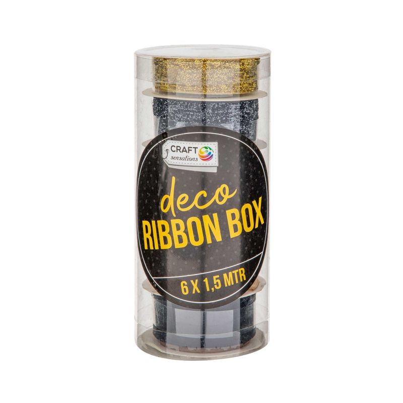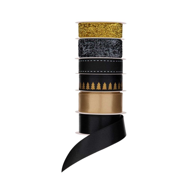 Craft ID Панделка, коледна, 1.5 m, черно-златиста, 6 броя