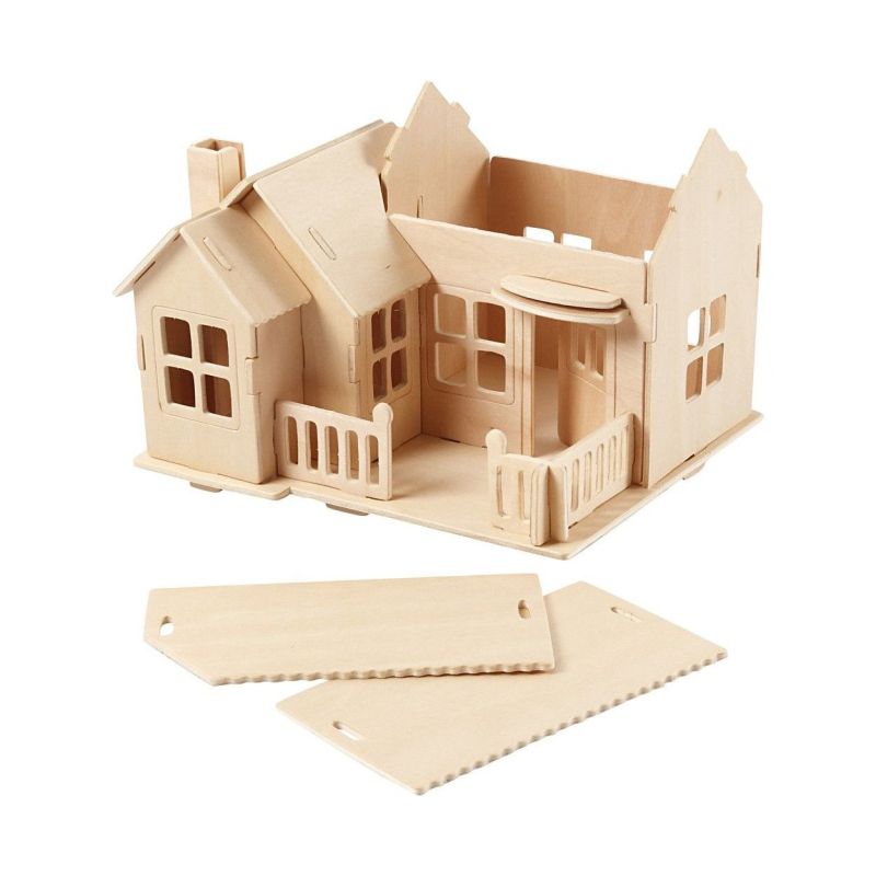 Creativ Company 3D Къща, за сглобяване и декорация с тераса, 19 х 17.5 х 15 cm