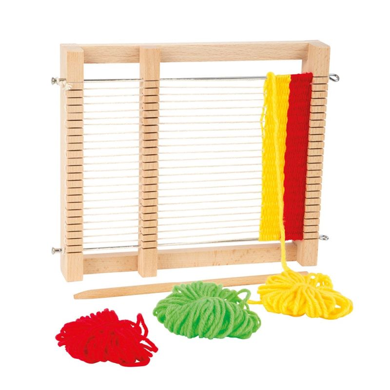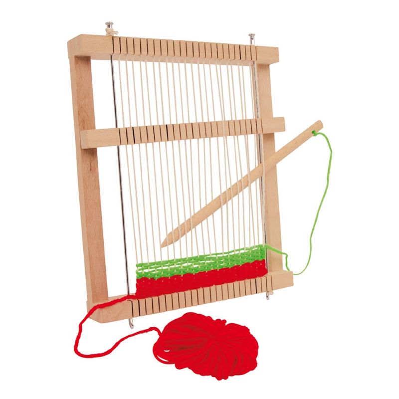 С този тъкачен стан, изработен от букова дървесина, децата имат възможност да експериментират и да създават свои собствени дизайни.