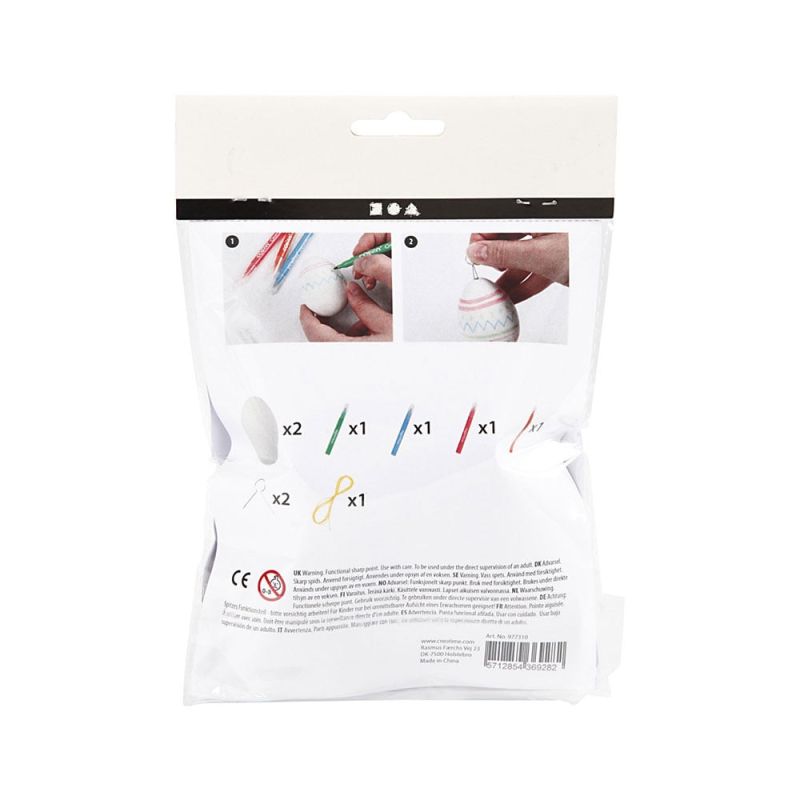 Комплект материали за декорация на бели пластмасови яйца с включени маркери.Включено ръководство за употреба.