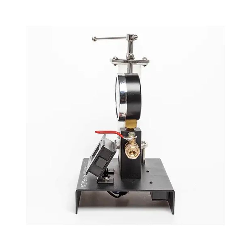 Завъртането на дръжката компресира въздуха, a oбемът, температурата и налягането могат да бъдат отчетени от дисплея на везната.
