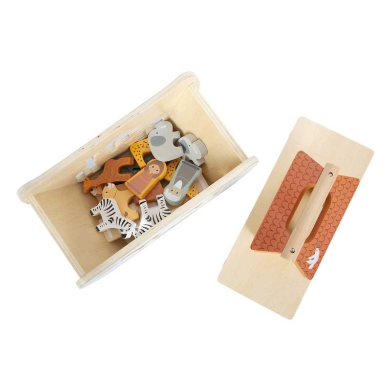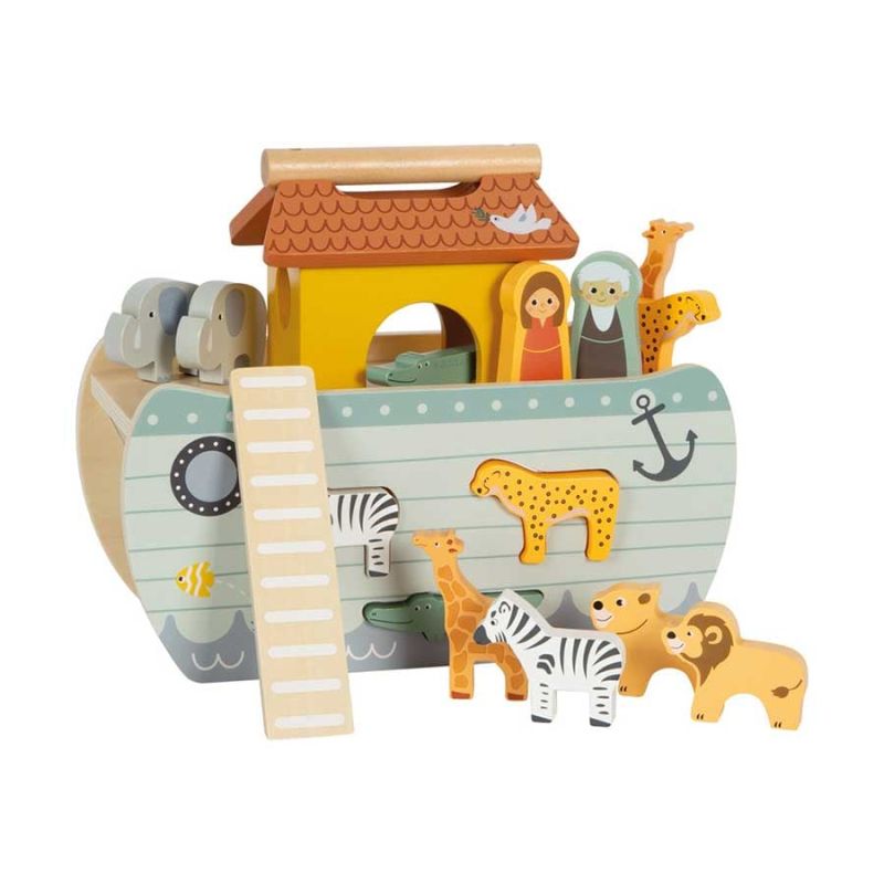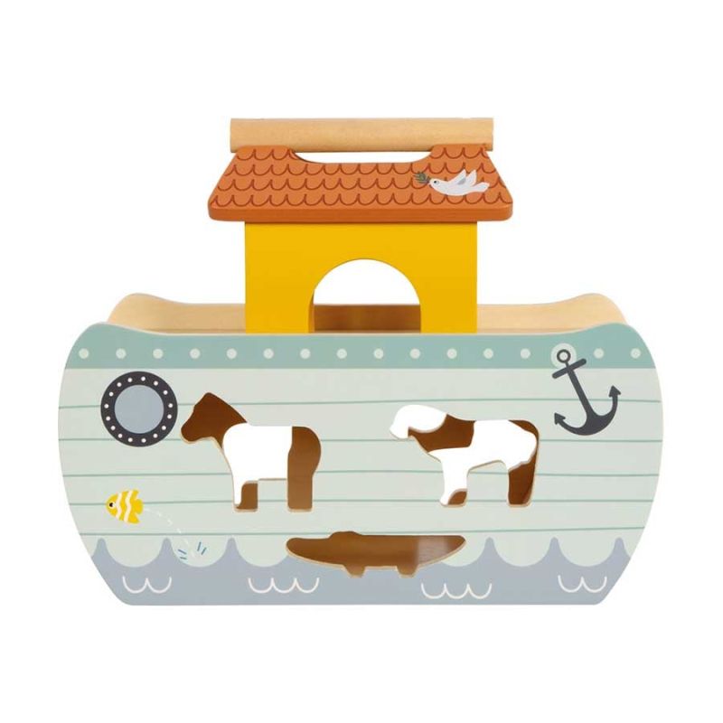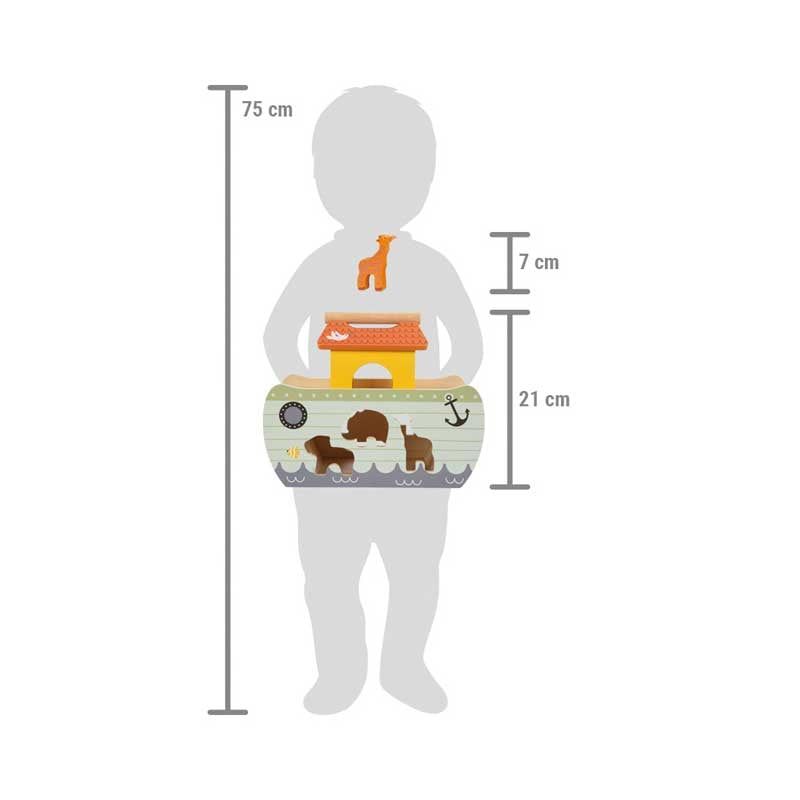 Отправете се на голямото приключение с Ноевия ковчег! Тази здрава дървена лодка с дръжка и подвижен капак предлага дълготрайно време за игра и забавление.