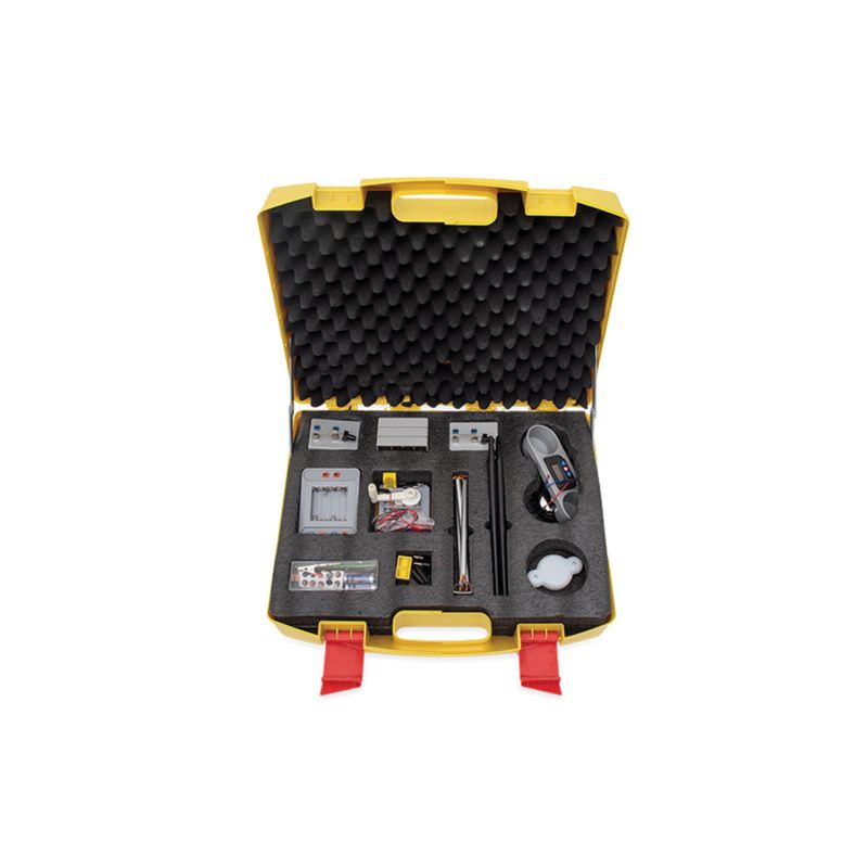 Комплектът помага за провеждането на основни експерименти в областта на електричеството.