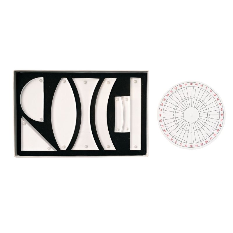 Комплект акрилни призми и лещи с магнити, обвити за лесно закрепване върху магнитна дъска. Елементите могат да се използват за изследване на природата на светлината (пречупване, дисперсия, вътрешно отражение). Пластмасовият циферблат с градусни маркировки може да се използва заедно с други елементи, за да експериментирате повече с оптиката. Комплектът съдържа 8 оптични аксесоара: