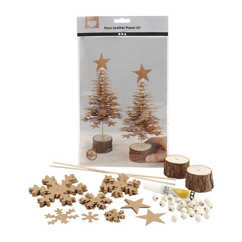 Съдържание: 2 x 16 снежинки от хартия с ефект на кожа, 4 звезди, 34 дървени мъниста, 2 дървени крака със съответстващи пръчки, лепило.