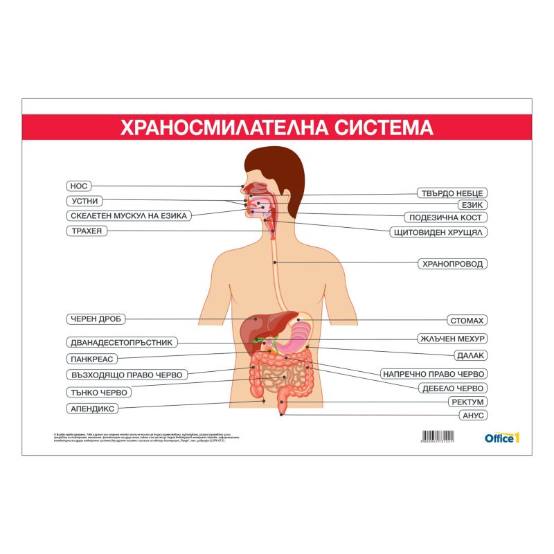 Office 1 Ученическо табло ''Храносмилателна система'', 100 x 70 cm