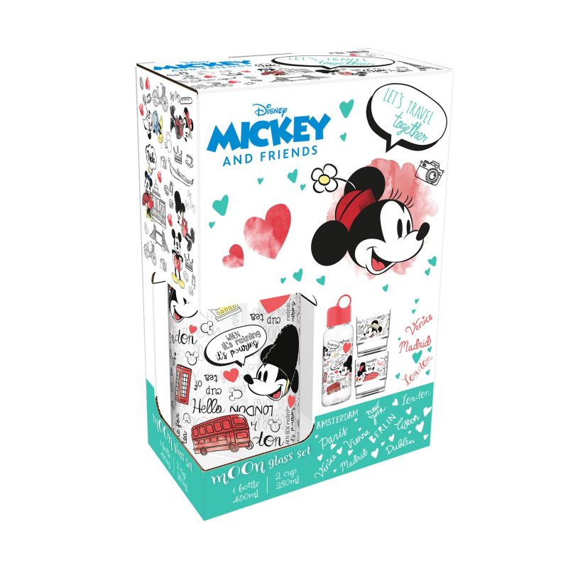 Disney Бутилка за пътуване, в комплект с 2 стъклени чаши, червена