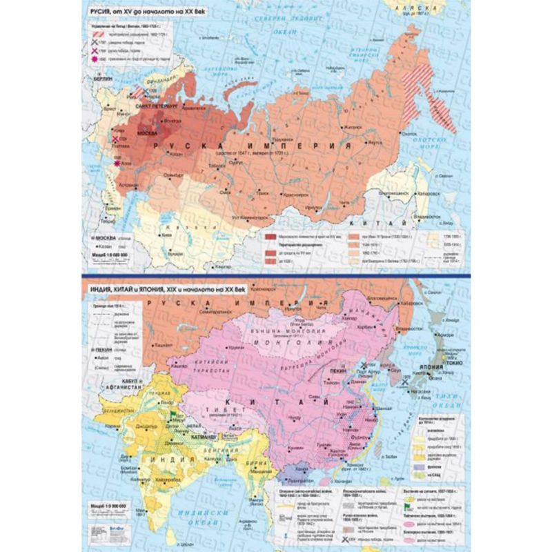 Карта Русия XV–XX в., Индия, Китай и Япония XIX, XX в