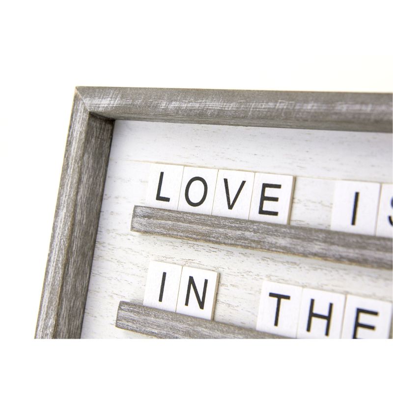 Прекрасна дървена рамка за съхранение на любими спомени! Към нея е добавен романтичен надпис, който да ви напомня, че въздухът около вас е изпълнен с любов!