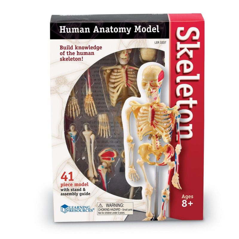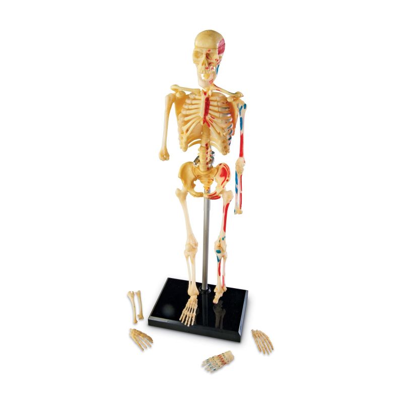 Насърчава децата да усвоят материята за човешкото тяло, изграждайки този модел на скелет.Илюстрира как си взаимодействат човешките органи. Запознава младите учащи с всички основни кости в човешкото тяло. Създава реалистичен подробен модел. Комплектът включва: модел скелет, ръководство с факти за човешкото тяло, инструкции, поставка. Размерът на завършен модел скелет е с 23 сm височина. Възраст: 8 – 12 години.