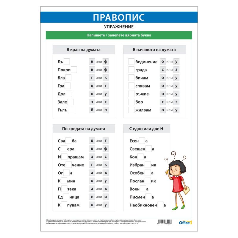 Office 1 Ученическо табло ''Упражнение по правопис'', 50 x 70 cm