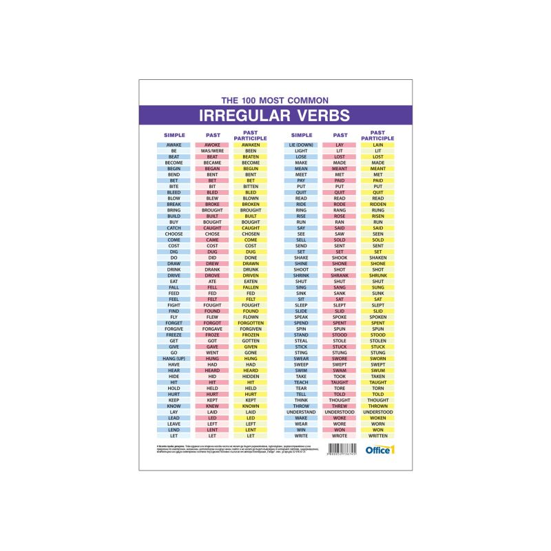 Office 1 Ученическо табло ''Неправилни глаголи в английския език'', A4