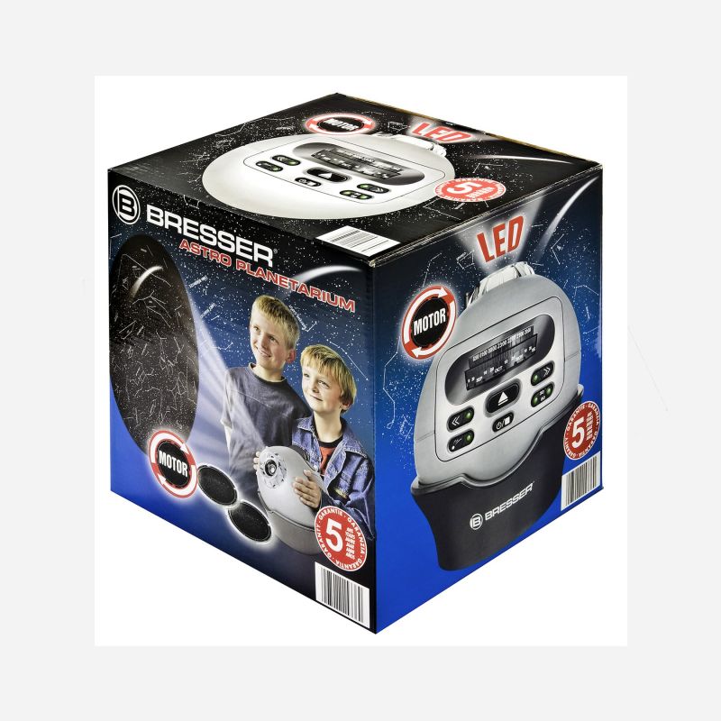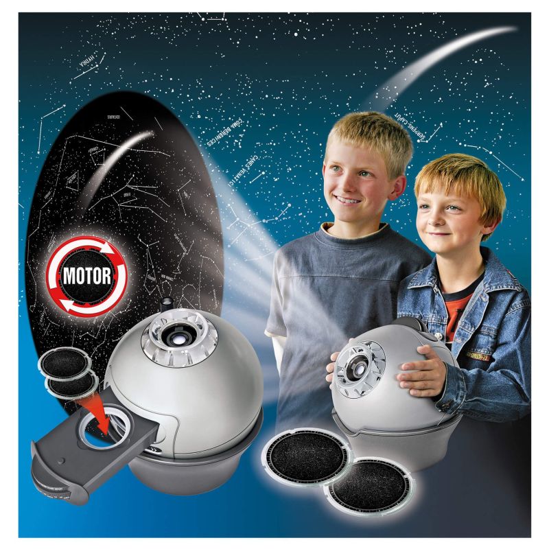 Симулация според действителното време и ден. Преместване на проекцията благодарение на 2 двигателя. Прожекционна повърхност: 1.6 х 2.1 m (на разстояние 2 m). Комплектът съдържа: планетариум, прожекционни дискове, батерии.