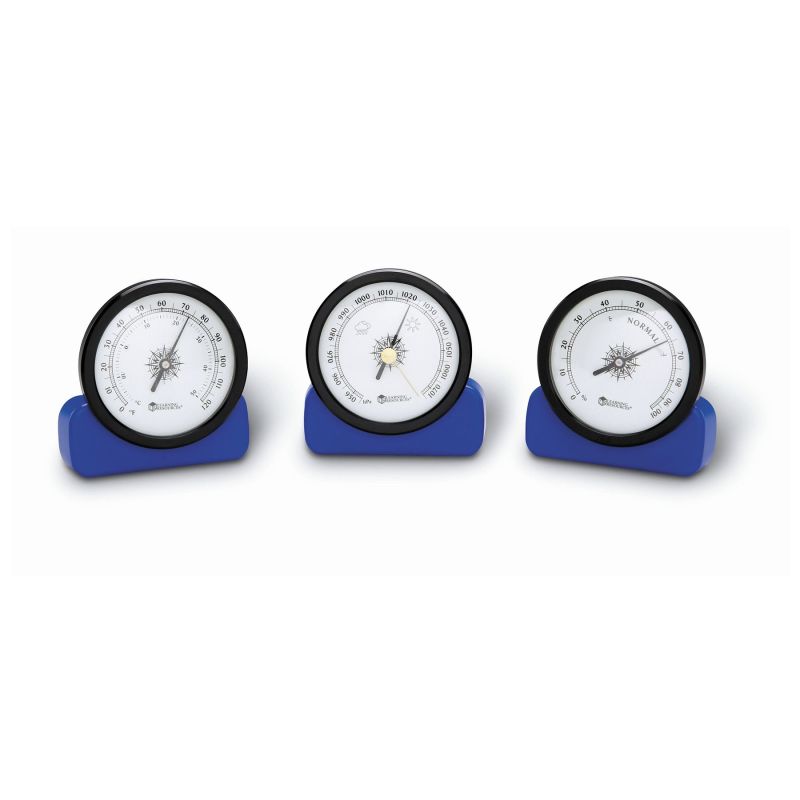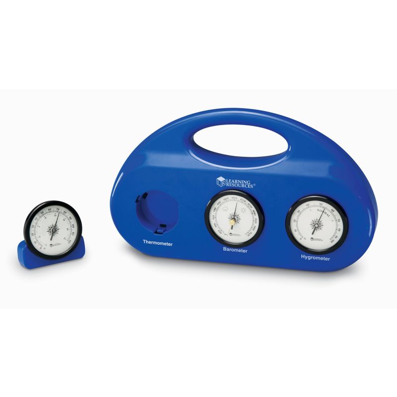 Това здраво куфарче съдържа барометър, хигрометър и термометър по Celsius и Fahrenheit, както и три стойки за индивидуално използване на инструментите.С включено ръководство. Възраст: 5 – 8 години.