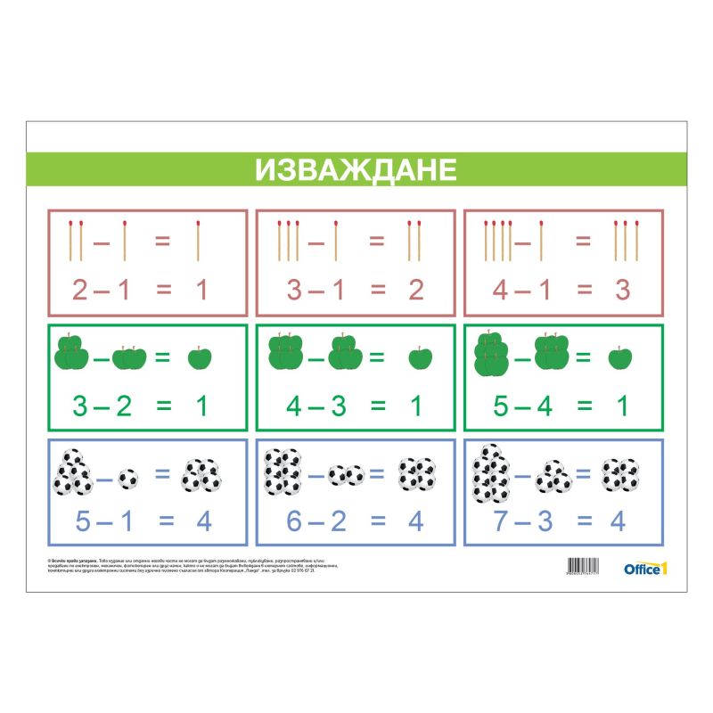Office 1 Ученическо табло ''Изваждане'', ламинирано, 50 x 70 cm