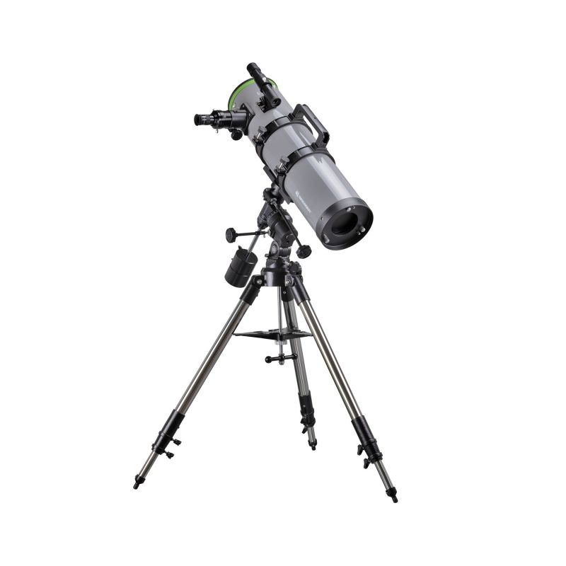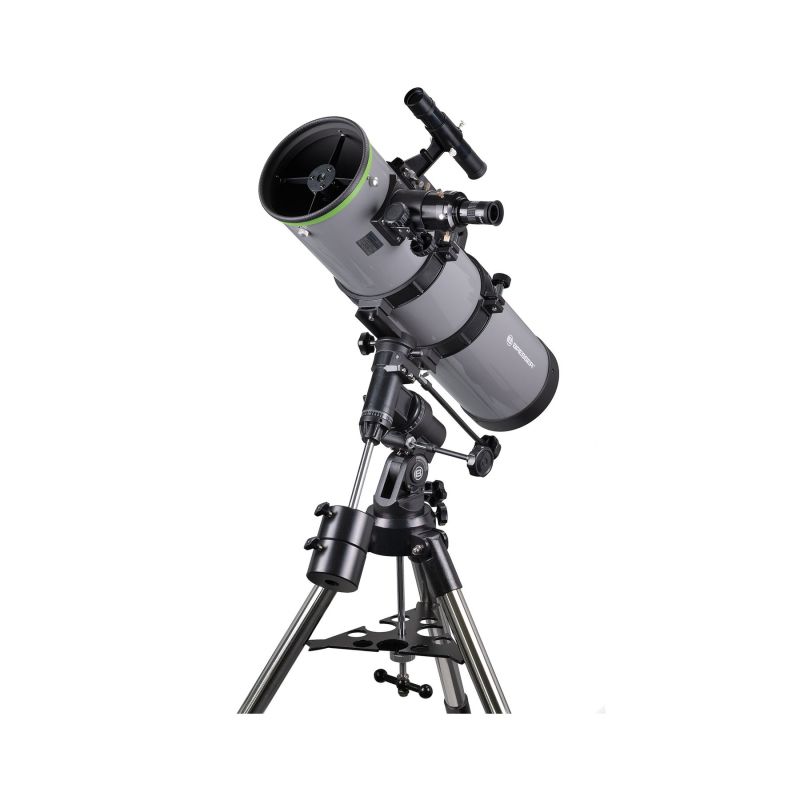 Благодарение на комбинацията от голяма 150 mm бленда и късо фокусно разстояние от 750 mm , можете да се удивите на огромен набор от небесни обекти като големи мъглявини, отворени звездни купове или галактиката Андромеда. Мощният рефлекторен телескоп Newton също е чудесен за наблюдение на нашата собствена слънчева система: с 25-милиметровия окуляр Plossl можете да видите Луната с 30-кратно увеличение. Първокласното параболично основно огледало произвежда значително по-резки изображения и по-добри контрасти от подобен телескоп с обикновено сферично огледало. В допълнение, телескопът има и голямо 55 mm вторично огледало , което осветява зрителното поле перфектно, за да създаде ярко изображение.