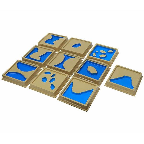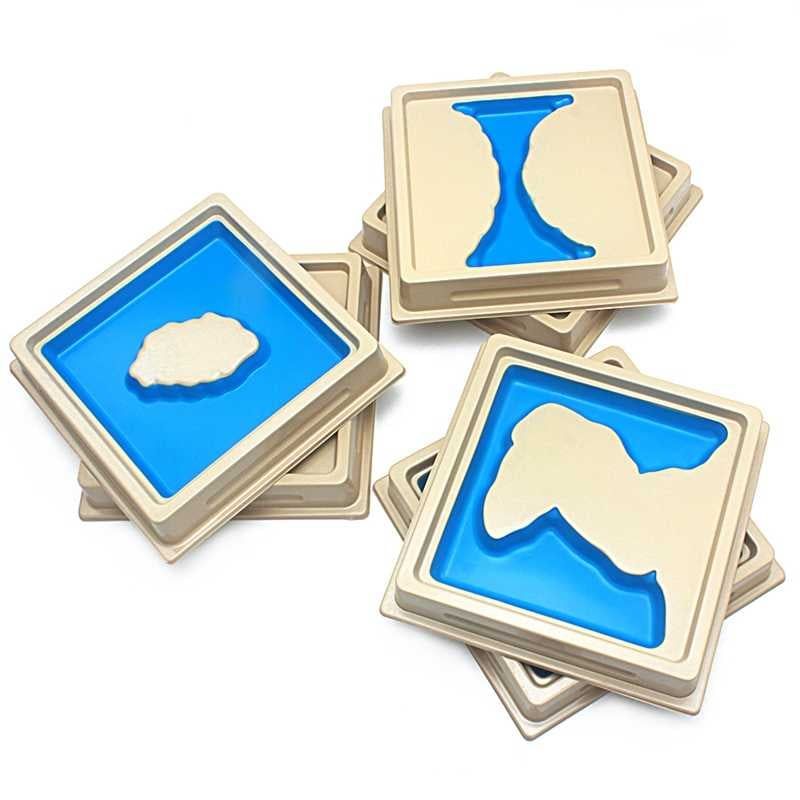 Плочки на земни форми Монтесори, релефни, 10 броя