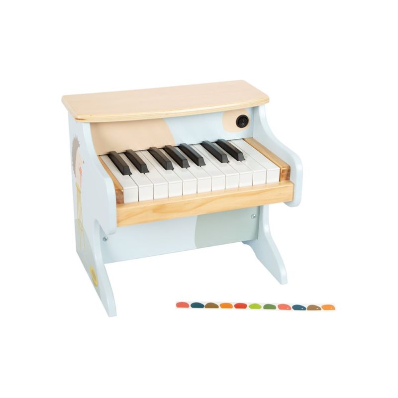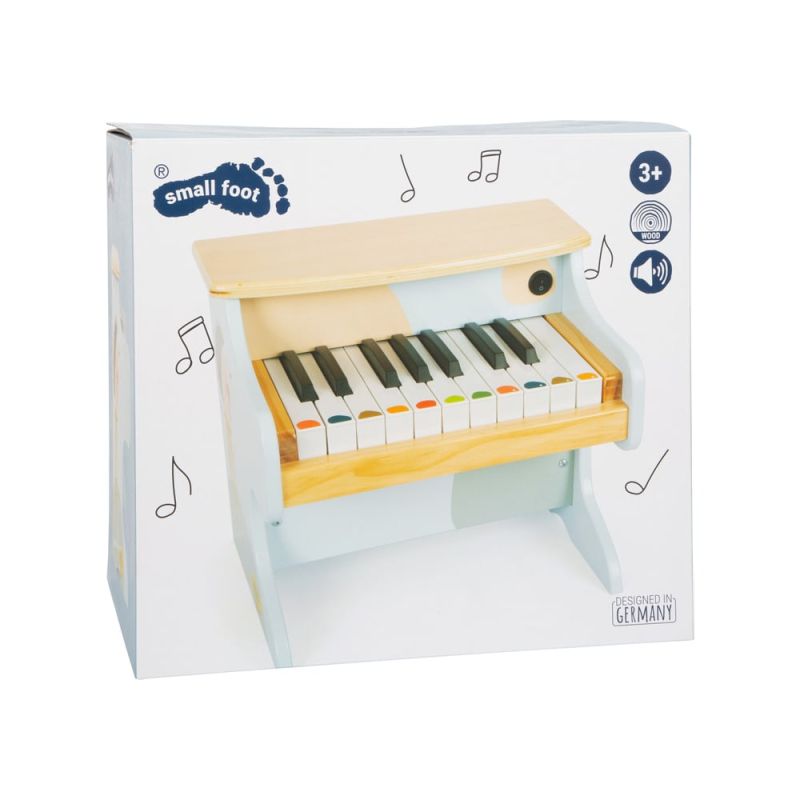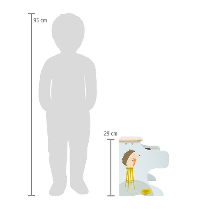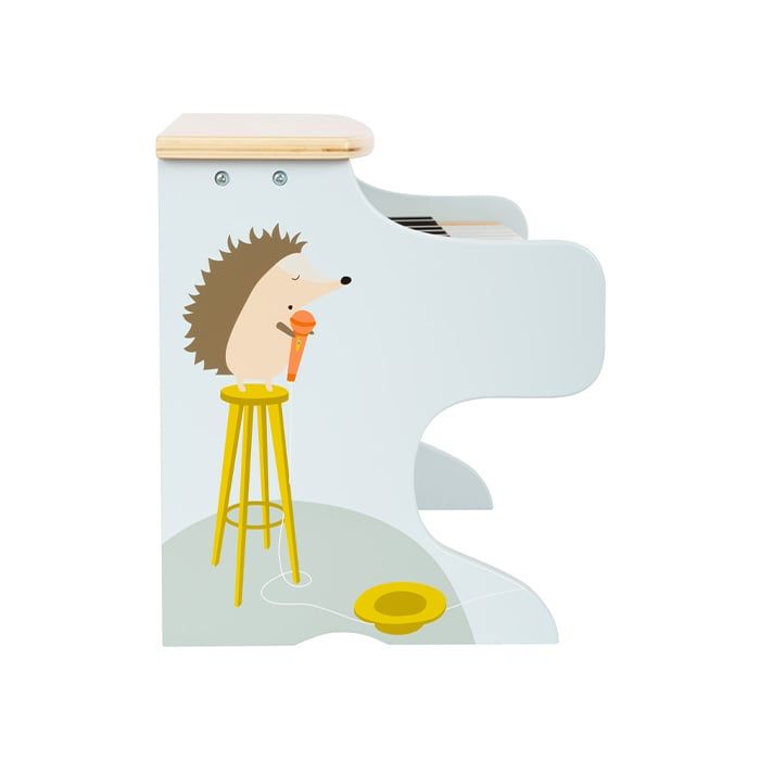С комбинация от много естествено дърво, модерни сини тонове и подходящи за децата мотиви, това пиано е и абсолютната звезда на оркестъра в детската стая!