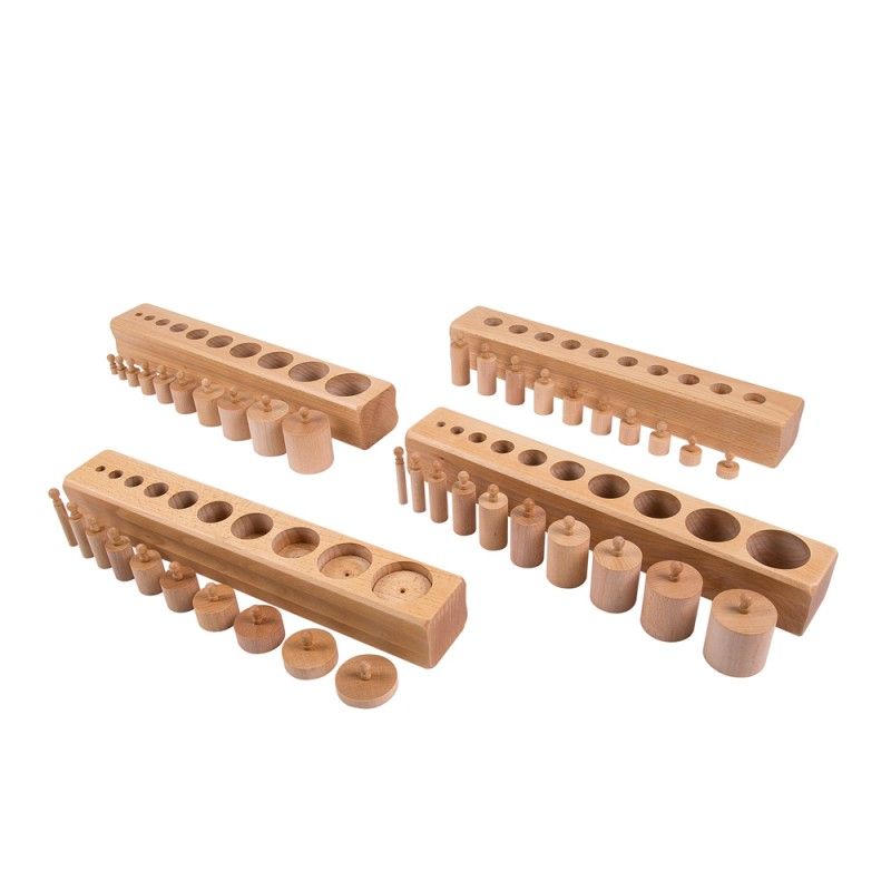 Монтесори-материал, който се състои от 4 дървени блока. Във всеки блок има по 10 дървени цилиндъра с малка дръжка. Цилиндрите са с различен диаметър и различна височина, така че във всеки един отвор на даден блок да може да се постави само един определен цилиндър. Посредством дръжката цилиндрите могат лесно да бъдат изваждани или обратно прибирани в съответните им места. Заниманията с тази игра имат за цел да развиват фината и грубата моторика на ръцете на детето - подготовка за писане, координация на пръстите, необходима за задържане на молива, както и усъвършенстване на целенасоченото движение, на концентрацията и зрителната памет.
