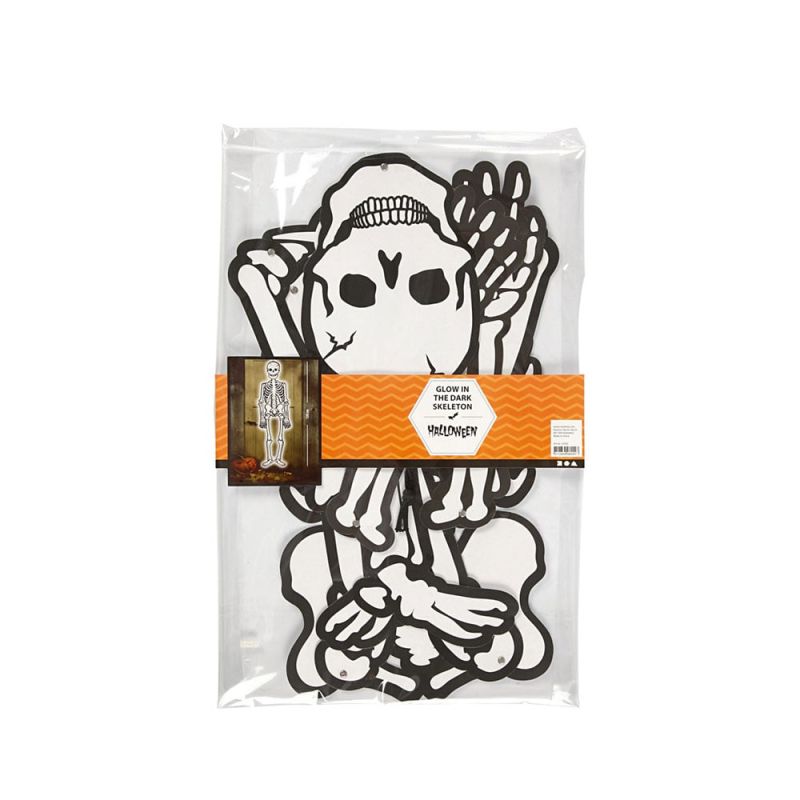 Голям скелет, който свети в тъмното! Скелетът е с черен контур и възможност за окачване. Направете своята страховита украса за Хелоуин в дома си и организирайте наистина страхотно парти!