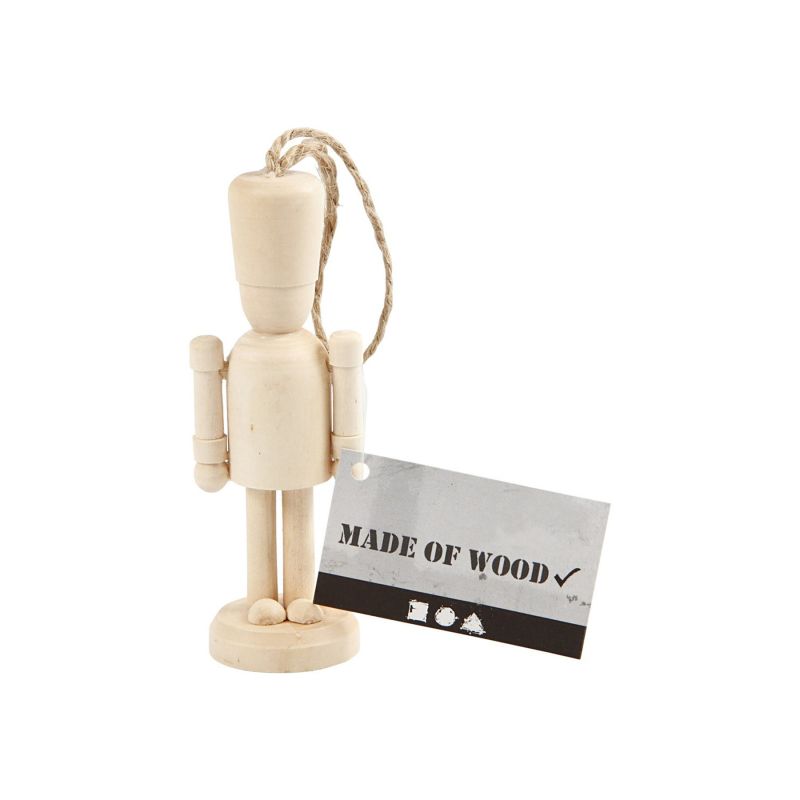 Фигурка на войник за декорация, изработена от светло дърво с фини детайли и връв за окачване.