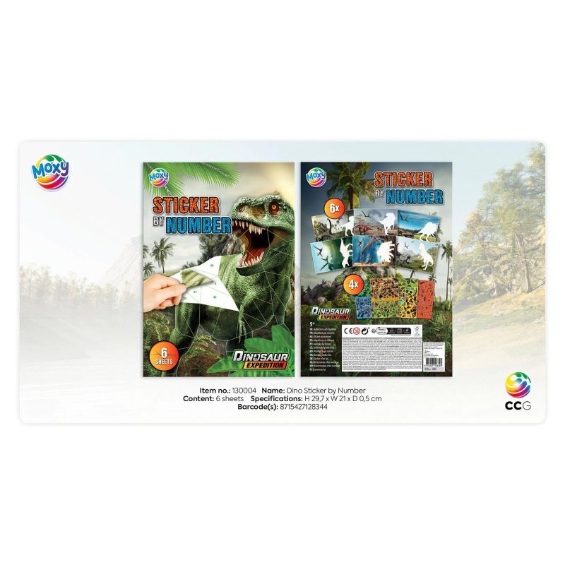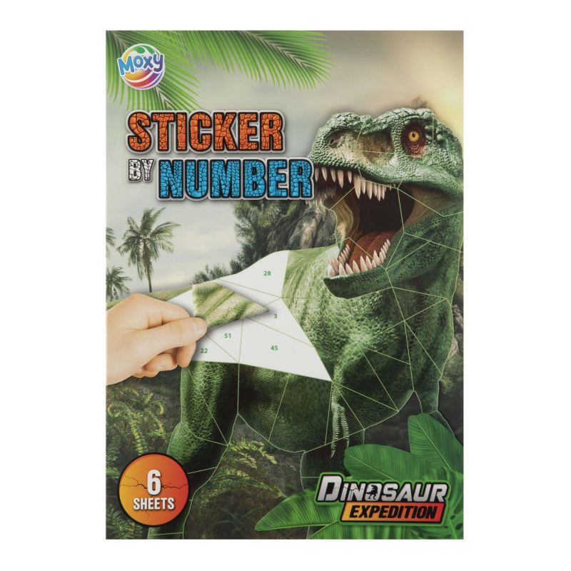 Moxy Книжка със стикери по номера - Динозаври, A4, 6 дизайна