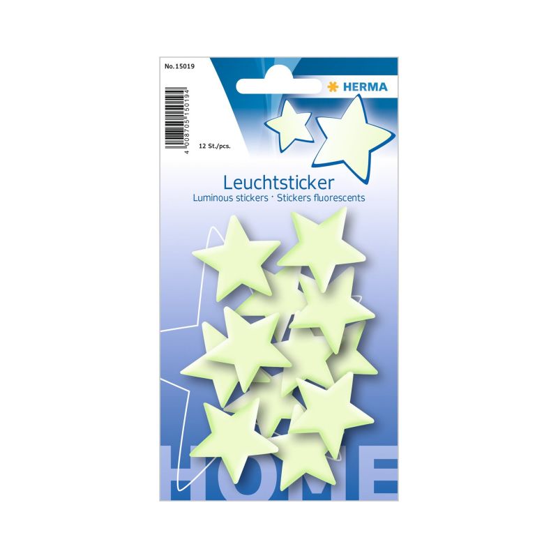 Самозалепващи е светещи етикети Herma във формата на звезди, които се отстраняват, без да оставят следи.