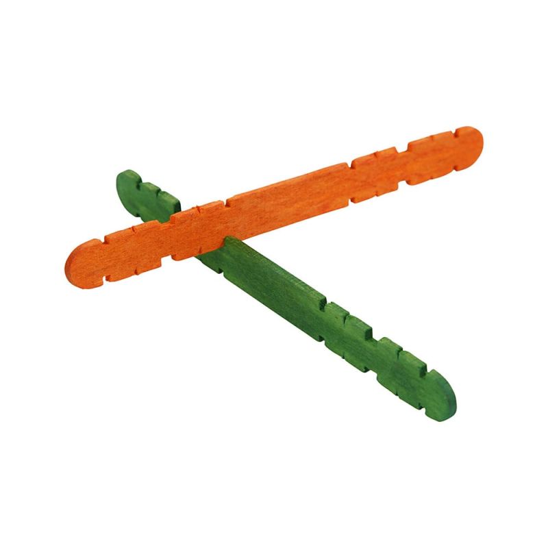 Дървени пръчици за сглобяване, произведени от светло дърво в 6 различни цвята – синьо, зелено, жълто, лилаво, оранжево, червено, бреза.