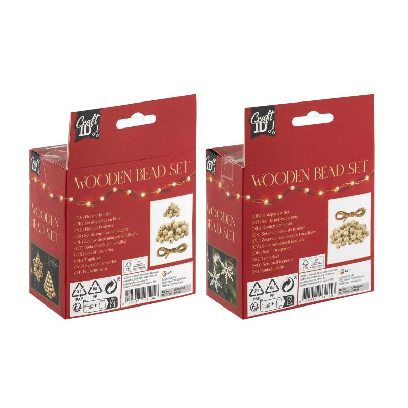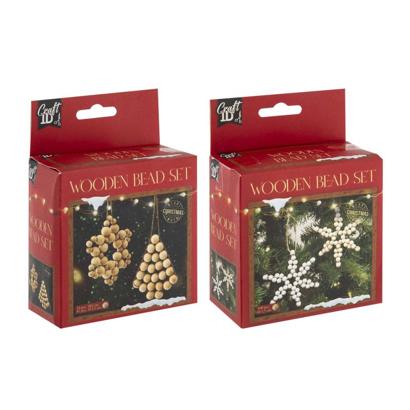 Craft ID Комплект мъниста за коледна украса, дървени, асорти, опаковка 48