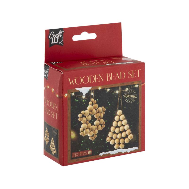 Craft ID Комплект мъниста за коледна украса - Елха и звезда, дървени