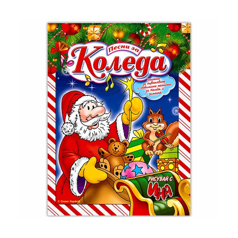 Книжка за оцветяване с текстовете на любимите песнички и красиви картинки. За топло настроение в празничните дни. Оцвети всички страници и научи песните. Подходяща за деца от 4 до 8 години.