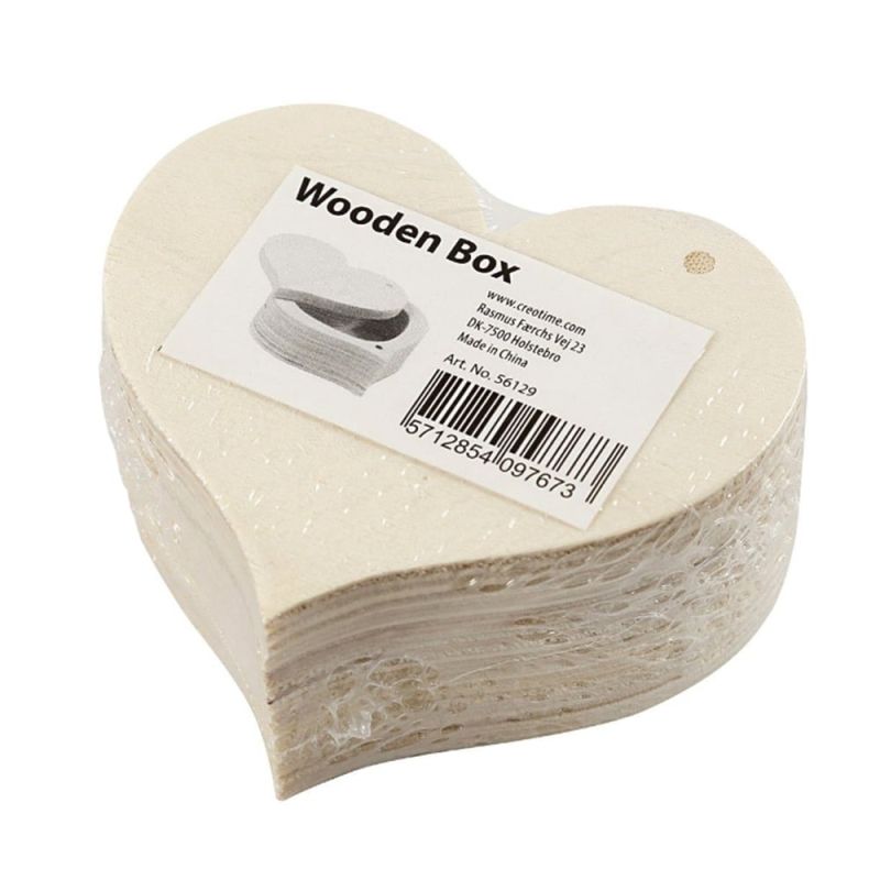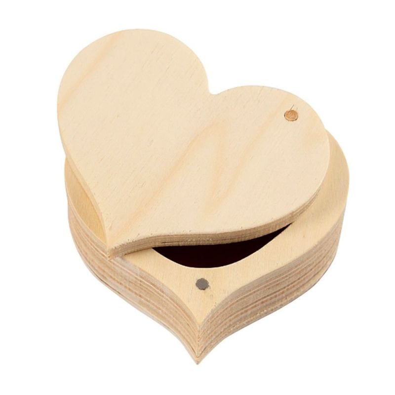 Кутия под формата на сърце, произведена от светло дърво, с подвижен обръщащ се капак и с дискретно магнитно затваряне.